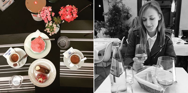 Dar riedant iš oro uosto į Trapanio centrą, prie lengvai pūpsinčių jachtų ir laivų, vietinis italas rekomendavo paragauti vieno gardžiausių jų desertų - Cannolo. Prie šio saldumyno, žinoma, rekomendavo gurkšnoti espresso arba Grino (vietinį vyną). Todėl pirmą vakarą žaviai dedikavusios Sicilijos virtuvei, gurkšnojom vyną ir mėgavomės saulėlydyje skęstančiais Egadi salynais.