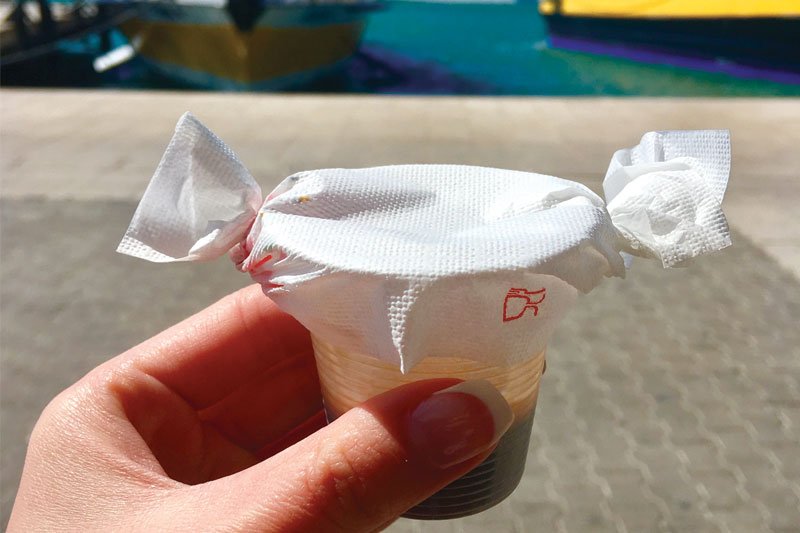 Kadangi kelionės laiką reikėjo taupyti, teko besti pirštu į žemėlapį ir išsirinkti vieną iš trijų salų. Kol laukėm savo mažojo keltuko į Levanzo, krantinėj įsikūrus kafeterija žaviam kempery gamino mums kavą. Arba kitaip – kavą su ausytėm. Tai, žinoma, tik servetėle meistriškai pridengtas espresso puodukas, kad neatauštų, tačiau tokios italų smulkmenos pakelia nuotaiką. Koks rūpestis!