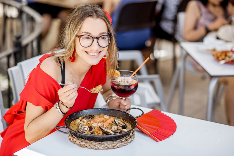 Jokiu būdu neužsisakykite ispaniškos paeljos vakarienės metu, nes liksite nesuprastas. Vakarienės metu ispanai renkasi lengvesnius patiekalus, pavyzdžiui tapas su vynu arba „pinchos“. Taip pat pamirškite įprastą vakarienės laiką, nes ispanai vakarieniauti pradeda apie 9–10 valandą vakaro ir didžiąją dalį laiko skiria tik bendravimui. Ispanijoje vakarienė pradedama tiekti ne anksčiau 8 valandos vakaro!