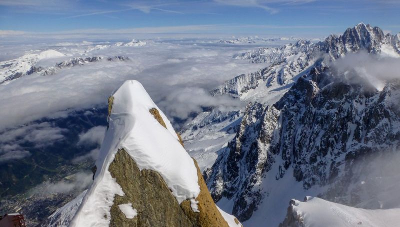 Pusryčiai. ~8 val. išvykstate iš viešbučio. *Pasikeliate į l’Aiguille du Midi (3842 m, „Vidudienio Smaigalys“) viršukalnę, nuo kurios atsiveria įspūdinga Monblano masyvo bei aukščiausio Europos kalno – Monblano (4807 m) panorama. Kvapą gniaužianti aplink supančių kalnų didybė pakeri kiekvieno turisto širdį. Iš čia, esant galimybei, – *„skrydis“ gondola virš „Milžino ledyno“ į jau Italijoje esančią Pointe Helbronner viršukalnę. Nusileidę nuo viršukalnės, pasivaikštote po nuostabų kalnų miestelį.