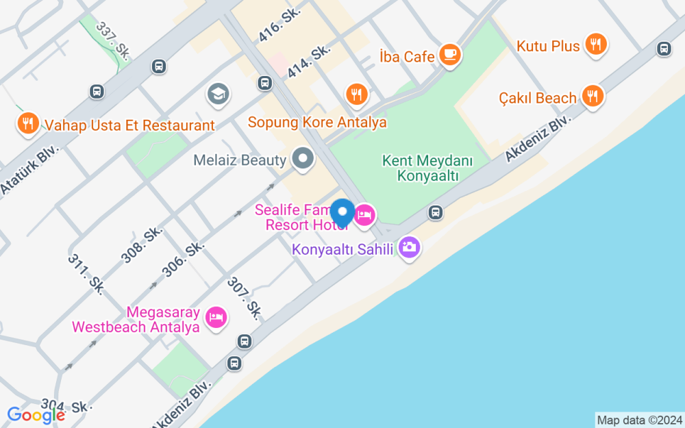 Nuo Antalija oro uosto iki SEA LIFE FAMILY RESORT HOTEL yra apie 20 km.