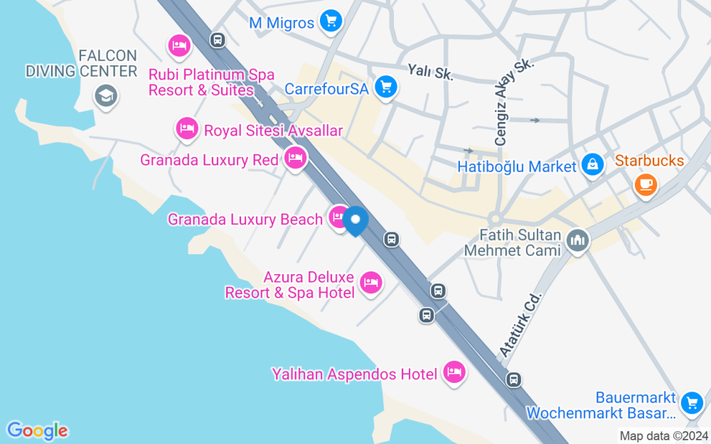 Viešbutis yra 500 m nuo Avsalar ir 20 km nuo Alanijos. Antalijos tarptautinis oro uostas yra už 100 km.