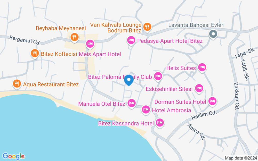 Viešbutis įsikūręs Bitezo rajone, už 6 km nuo Bodrumo miesto centro. Bodrumo Milo oro uostas yra už 41 km nuo viešbučio.