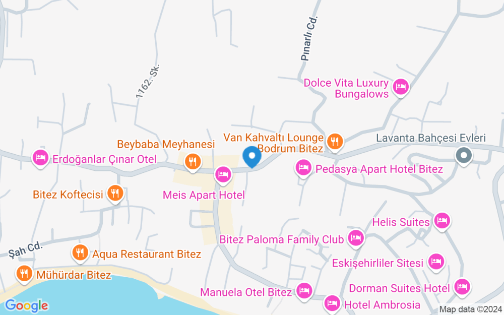 Bitez Beach - 0,9 km Mor Plaj - 1,5 km WOW Beach - 1,9 km Yeşil Plaj - 2,5 km Prekybos centras „Oasis Mall“ - 3,2 km Myndos vartai - 3,6 km Ortakent Beach - 3,8 km Bodrumo vėjo malūnai - 3,8 km Bardakci įlanka - 3,8 km Bardakci paplūdimys - 3,9 km Yahsi Beach - 4,3 km Bodrumo amfiteatras - 4,5 km Bodrumo prieplauka - 4,5 km Halikarnaso mauzoliejus - 4,7 km Vandens parkas „Bodrum Dedeman Aquapark“ - 5 km