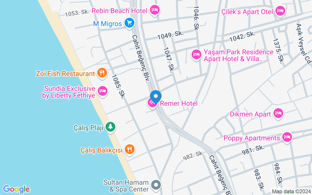 Located just 50 metres from Çalış Beach, Hotel Remer has an outdoor pool surrounded by a sun terrace. Wi-Fi is free throughout the hotel, and on-site car parking is free.