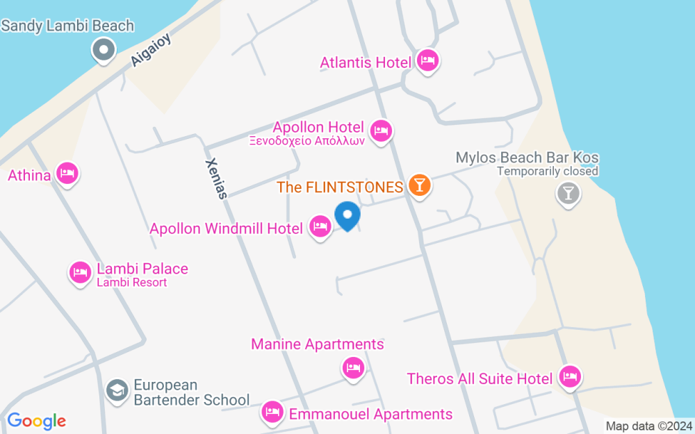 Nuo Koso sala oro uosto iki APOLLON WINDMILL BOUTIQUE HOTEL yra apie 24 km.