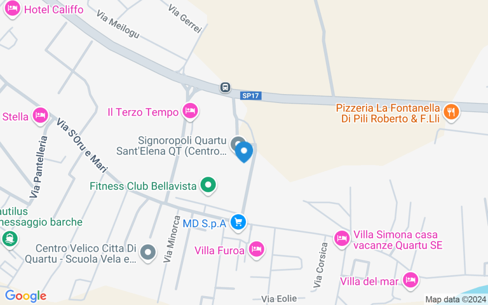 Viešbučio vieta apie 17 km iki Kaljario oro uosto, apie 12 km iki Kaljario miesto, apie 5 km iki Quartu Sant Elena miestelio, apie 1.5 km iki Sant'Andrea paplūdimio, apie 2 km iki Poetto paplūdimio.