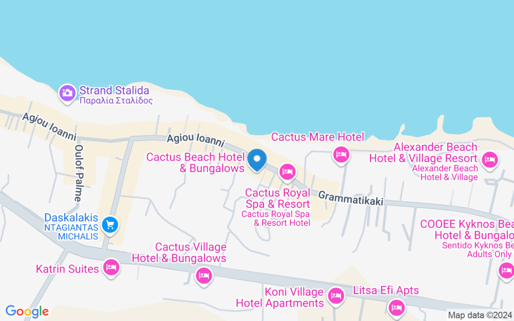 Nuo Stalida oro uosto iki Cactus Beach Hotel yra apie 35 km.