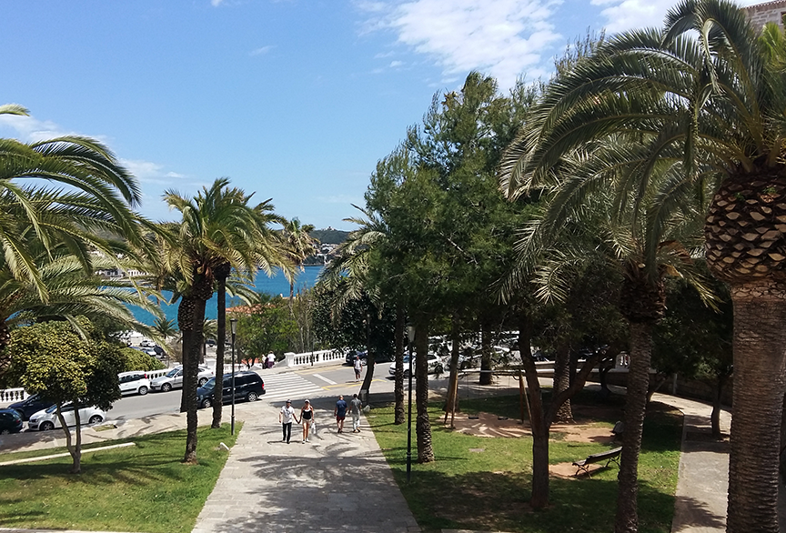 „Vėliau kilome į aukščiausią salos tašką, iš kurio atsiveria plati salos panorama, kurios horizonte galima išvysti ir Maljorką. Kalno viršūnėje stovi bažnyčia, kurioje gyvena trys vienuolės iš Kolumbijos, jos niekam nesirodo, tačiau puošia vietovę savo užaugintomis gėlėmis. Būtent Menorkos gamtą verta pamatyti dėl dar vieno išskirtinio dalyko – čia kartu auga ir palmės, ir pušys. Tokie mišrūs miškai mano lietuviškai akiai atrodė labai įspūdingai.“